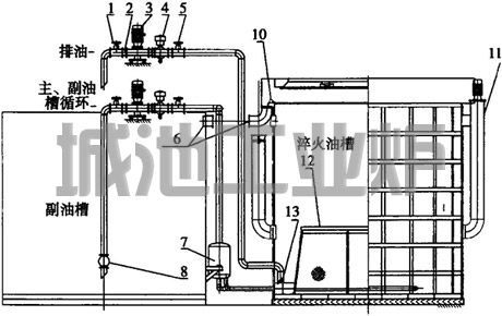 热处理车间统一设置淬火槽冷却循环系统设有集液槽的冷却循环系统这种系统油的循环路线是:热介质从淬火槽的溢流槽流入集液槽介质中的杂质在集液槽中沉积;介质经过滤器,再由...